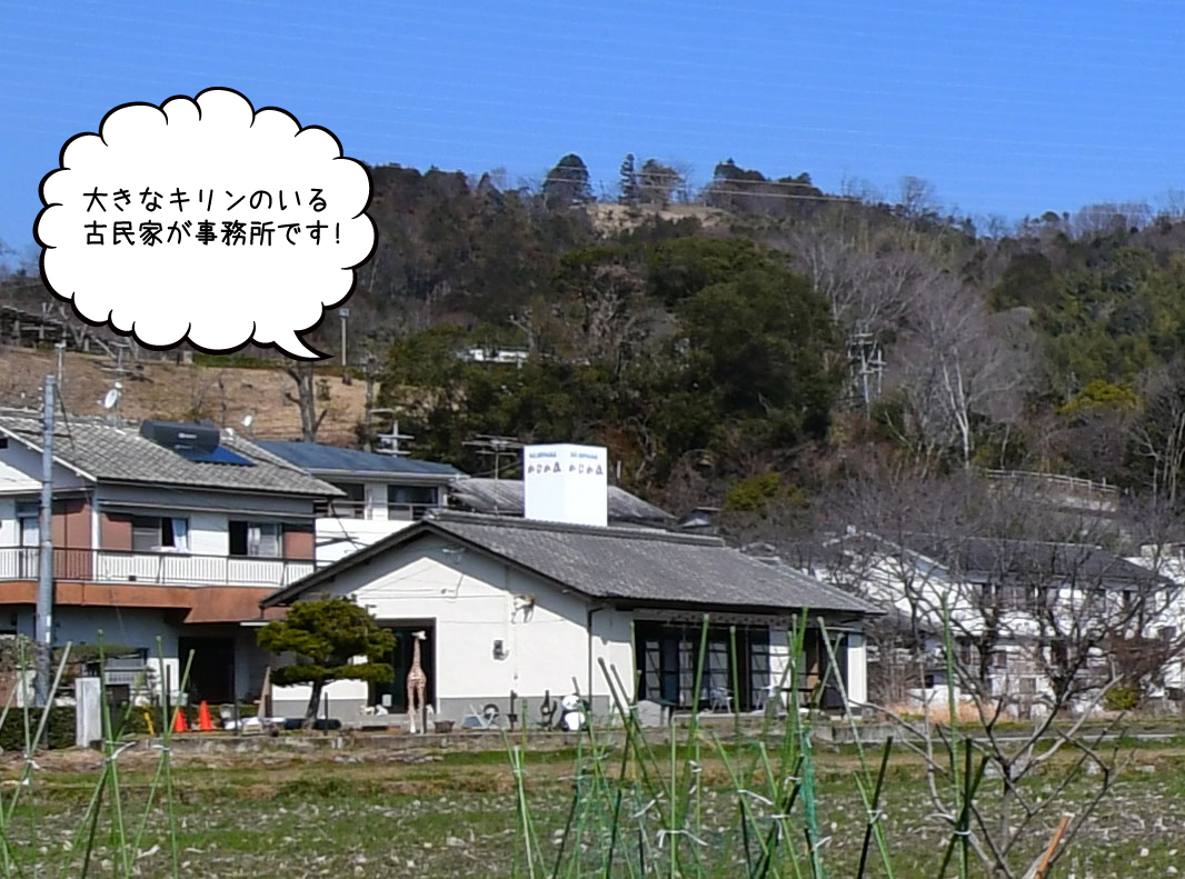 下り道へ進むと大きなキリンが目印の古民家があります。